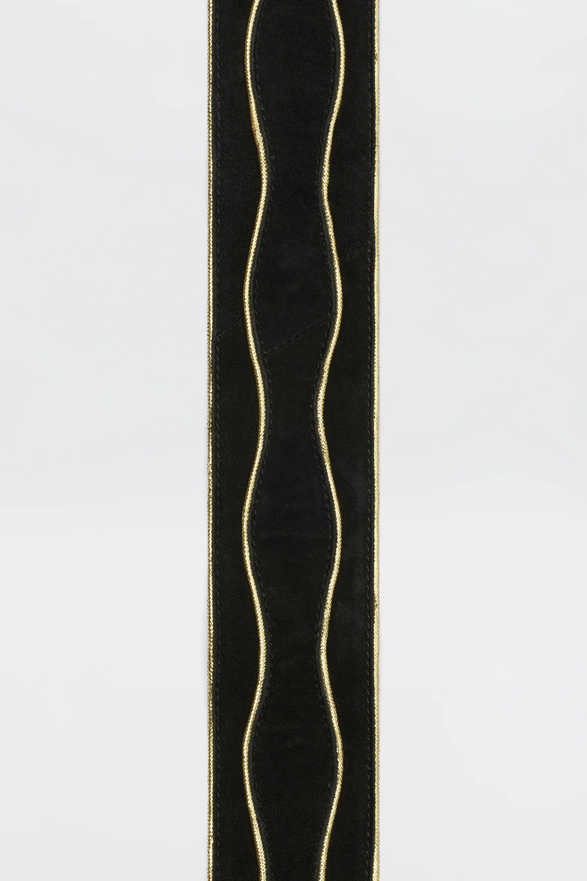 The Catalina is RIXO's kind of little black belt: sueded cow's leather with a glamorous braided-gold trim and wave detailing. Use her to take an LBD from day to evening and pick up her details with gold jewellery.