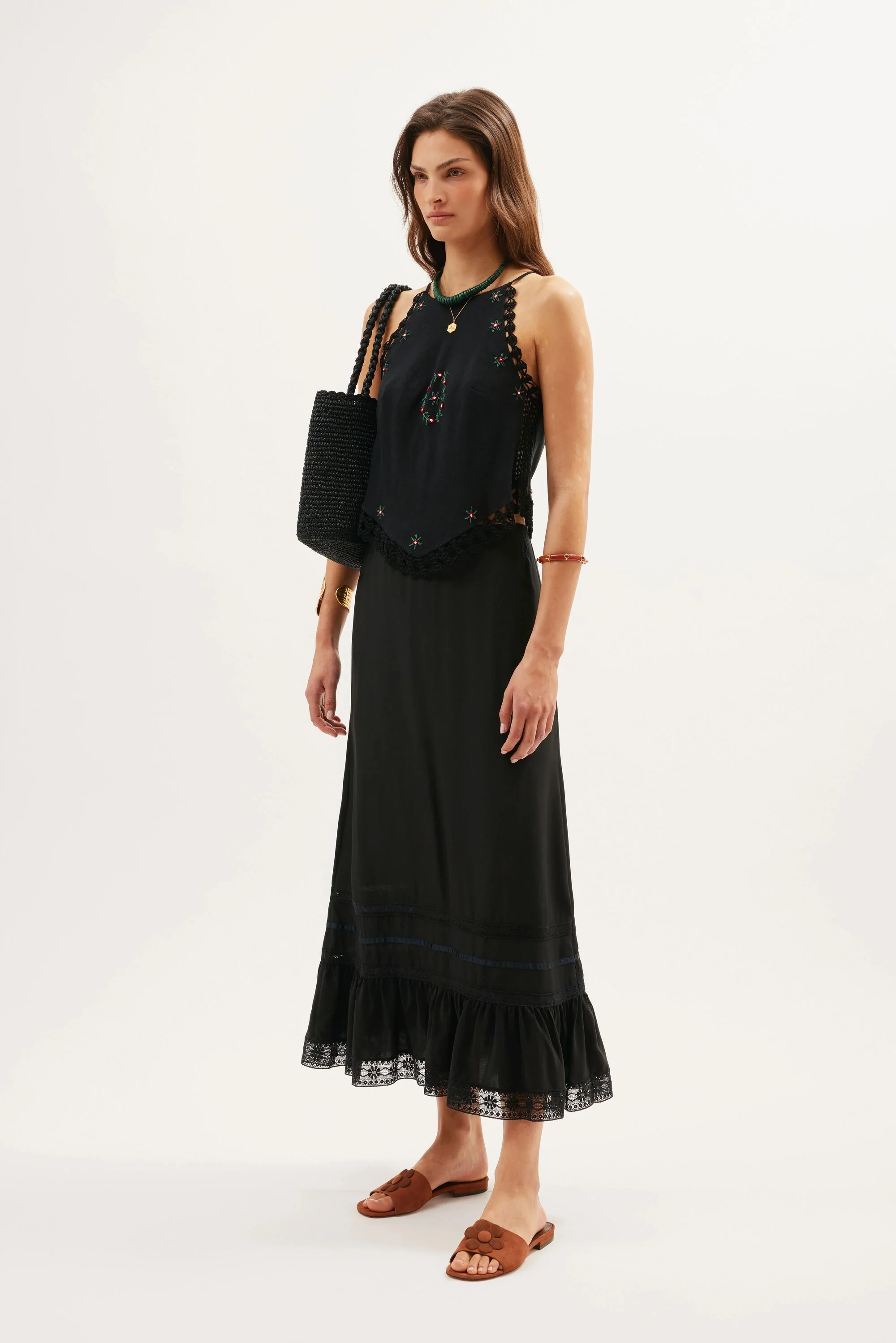 The ribbon detailing on this Eilish skirt was inspired by a vintage petticoat. It's made from silk in a fluid bias cut that flares out slightly at the hem.
