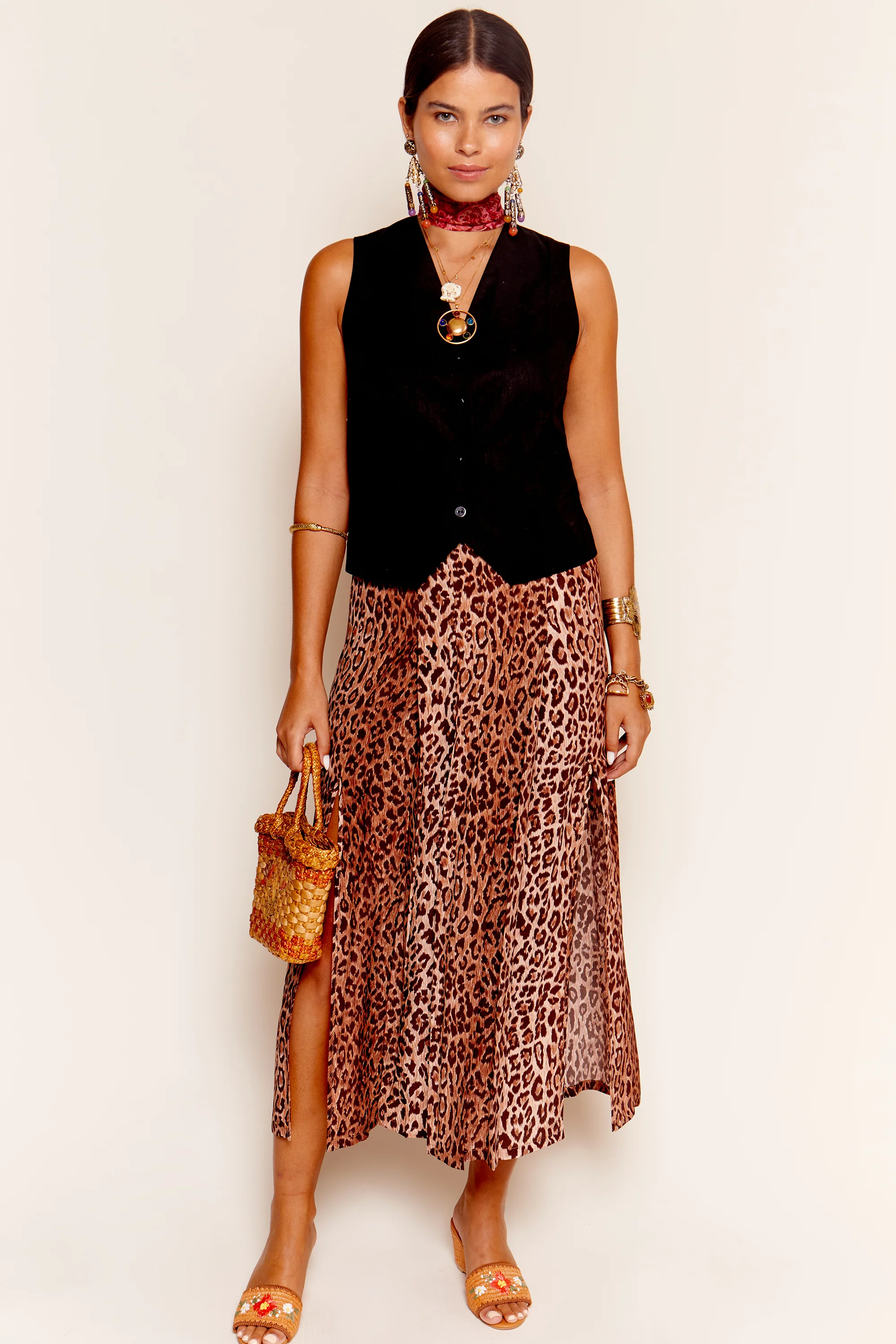 The Norah is one of our wardrobe staples: a smart black waistcoat-style top in a lightweight cotton-linen blend. She buttons through the front and is straight cut, though she may be pulled in at the waist through her ties for a more figure-skimming fit.