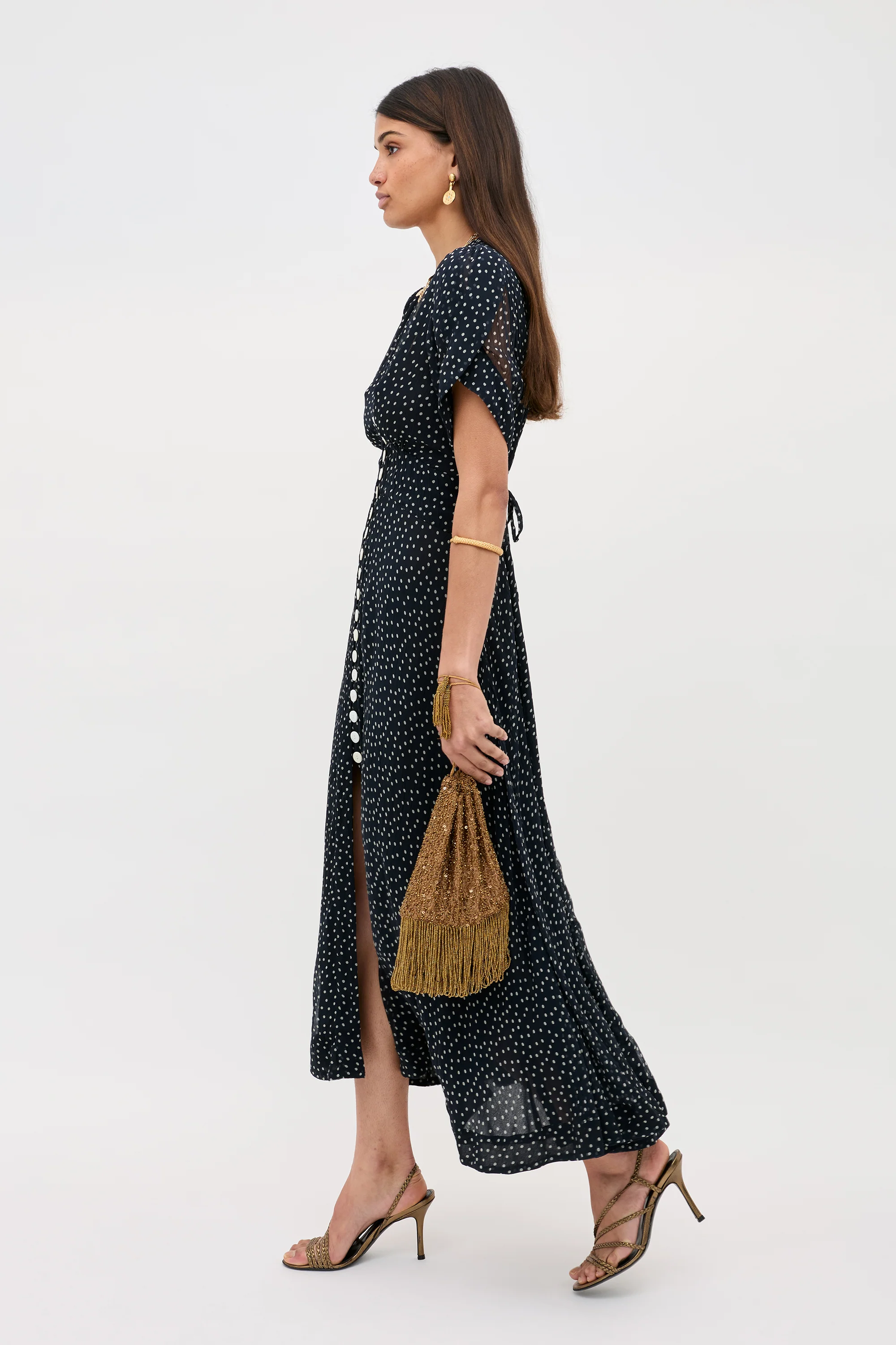 Novara is inspired by a vintage dress that our Co-founder and Creative Director, Orlagh, discovered at Portobello. The curved sleeves create such a pretty shape that compliments the nipped-in waist and polka-dot print.