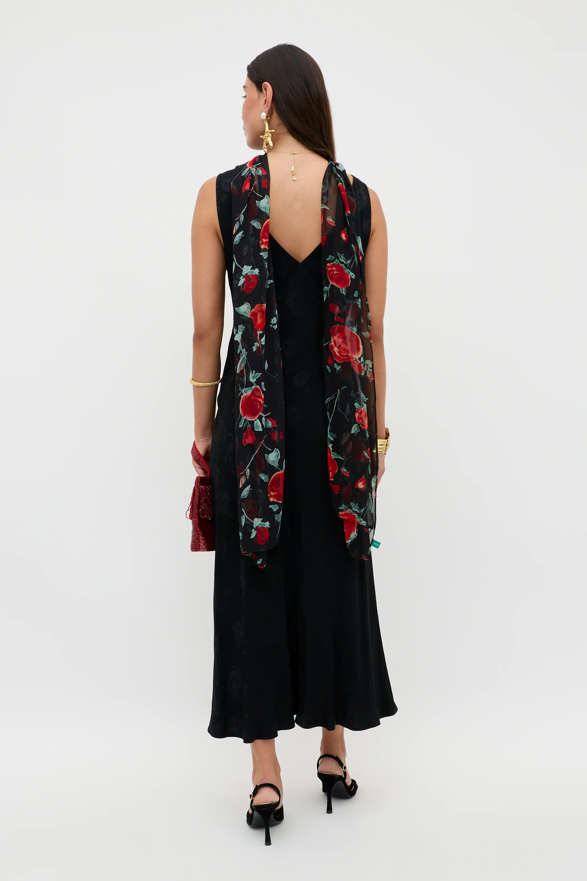 The Sandrine midi dress's poppy patterned jacquard gets you occasion ready in moments. This bias-cut slip style was inspired by Thirties vintage.