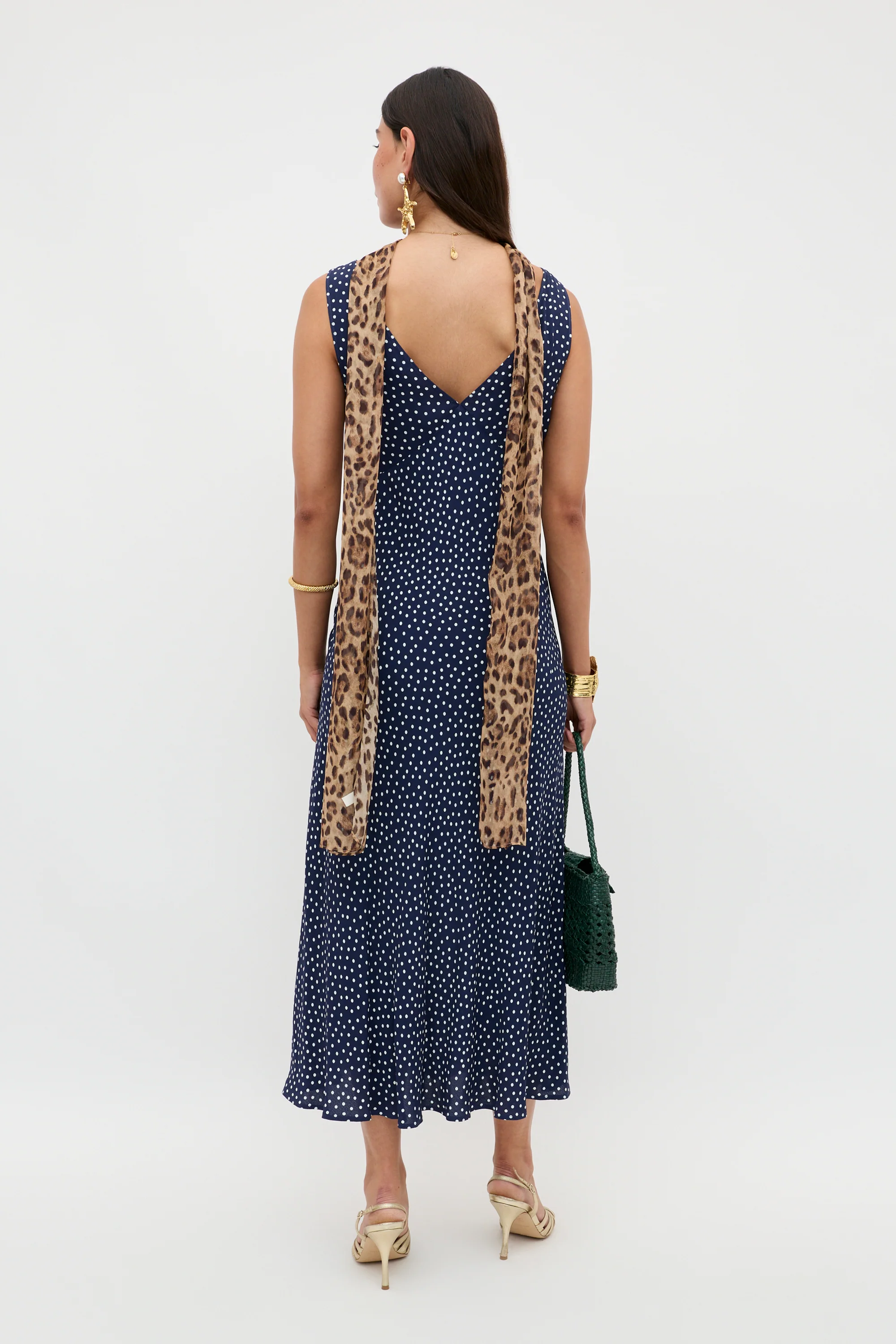 The Sandrine is an iconic RIXO style, a Thirties-inspired bias-cut slip with V-neck and V-back and a figure-lengthening empire waist. Her polka-dot print is also classic RIXO and inspired by vintage.